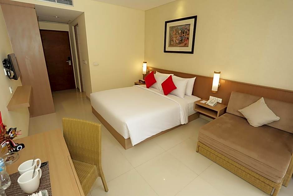 Grand La Walon Hotel sijaitsee Jalan Benesarilla Legianissa, Indonesiassa, vain 0,6 mailia päässä kaupungin keskustasta. Paikan päällä on maksuton pysäköinti ja veloitukseton Wi‑Fi, joka pitää suunnitelmat joustavina. Yksityinen sisäänkäynti ja terassi toivottavat vieraat tervetulleiksi, ja äänieristetyt huoneet, hissi sekä 24h-vastaanotto tuovat arjen mukavuutta Legianin tutkimisen jälkeen.