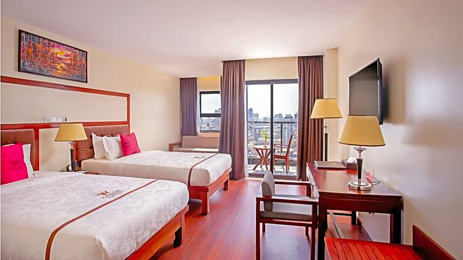 Tervetuloa Poulo Wai Hotel, Trademark Collection by Wyndham — viehättävään neljän tähden keitaaseen, joka sijaitsee vain 0,4 mailia Phnom Penhin elävästä keskustasta, Kambodžassa! Nauti aamukahviasi terassilla ihaillen upeita näkymiä tai virkistäydy ulkouima-altaassa — ei huolta, se on maksuton! Hinnat alkavat vain $44, joten tämä helmi yhdistää edullisuuden ja ylellisyyden ja on täydellinen tukikohta Kambodzassa seikkailullesi.