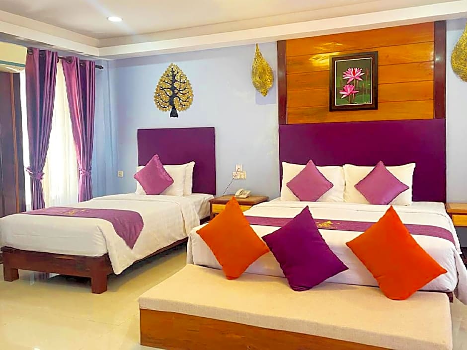 Tervetuloa kohteeseen Cheata Residence — täydellinen keidas Siem Reapin sydämessä! Sijaitsee vain 2,6 mailia päässä vilkkaasta keskustasta, tämä 4 tähden hotelli tarjoaa uskomattoman pakopaikan täynnä seikkailua ja rentoutumista. Alkaen vain $53, voit joka aamu nauttia raikkaasta, maksuttomasta aamiaisesta ennen kuin sukellat Kambodzan seikkailuihin. Kuvittele herääväsi äänieristetyssä huoneessasi, siemailevasi kahvia parvekkeellasi ja ihailevasi upeita puutarha- tai nähtävyysnäkymiä — mitä parempaa voisi toivoa?