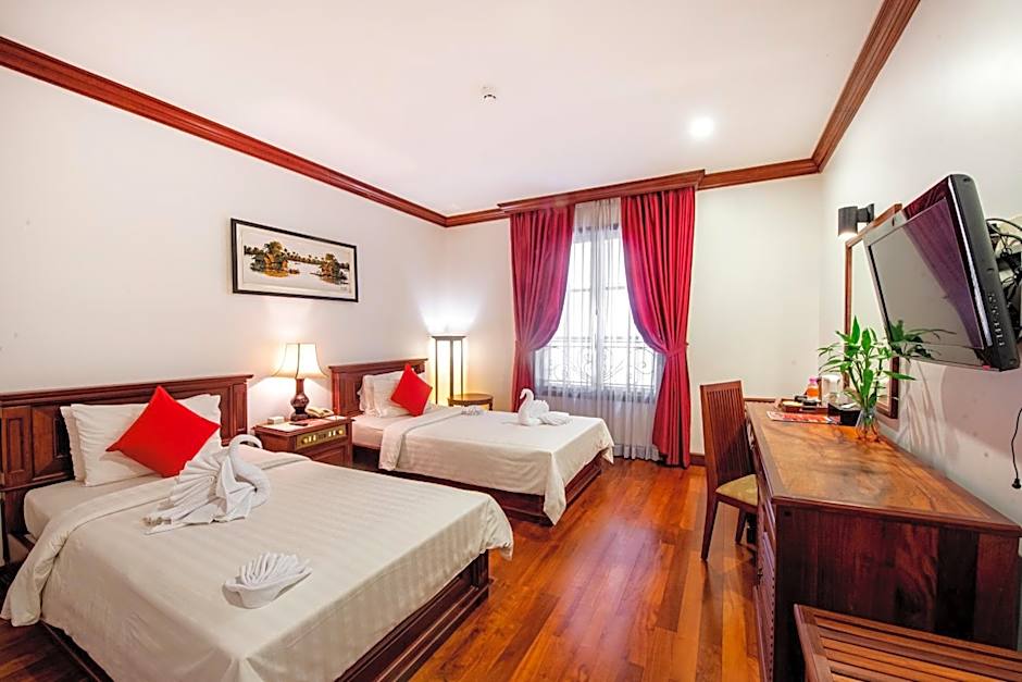 Täydellisesti kaikenlaisille matkailijoille sopiva Royal Crown Hotel & Spa palvelee myös liikuntarajoitteisia tarjoamalla pyörätuolia käyttävien vieraille sopivia huoneita ja hissejä. 24 tunnin vastaanotto varmistaa, että apu on aina lähellä, joten kambodžalainen lomasi on sekä hauska että vaivaton. Olitpa sitten aurinkoterassilla rentoutumassa, tutkimassa Siem Reapin nähtävyyksiä tai nauttimassa puutarhanäkymästä, tämä hotelli takaa miellyttävän vierailun täynnä mukavuutta, tyyliä ja ripauksen kuninkaallista eleganssia.