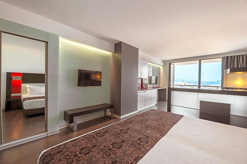 Oletko ruokaihminen sydämeltäsi? Hyvä — olet hyvissä käsissä! Hotellin Grand Caffè tarjoaa hienon yhdistelmän modernia tunnelmaa ja aitoja Välimeren makuja. Aamiaisvaihtoehdot ovat vasta alkua; voit odottaa suussa sulavia Välimeren herkkuja, jotka jättävät makunystyräsi kaipaamaan lisää. Mikset käpertyisi täydellisen merinäköalan ääreen ja nauttisi hienostuneesta illallisesta auringon laskiessa? Herkullisen ruoan syöminen samalla kun merituuli hyväilee ihoa tekee illallisesta elämyksen, ei pelkkää ateriaa.