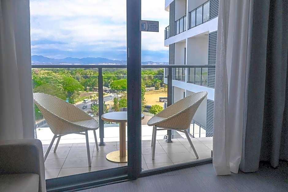 Our spacious 818 sqft Suite offers a king size bed, sofa bed, and a balcony with stunning mountain and landmark views. Enjoy air conditioning, soundproofing, and free toiletries, along with the convenience of elevator access to upper floors.