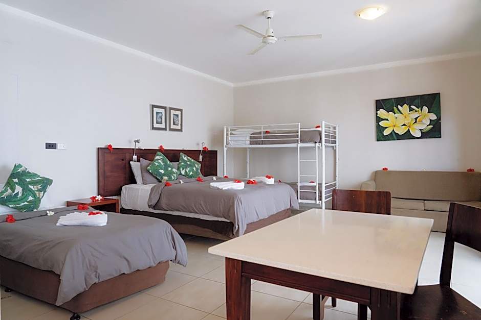 This family suite has 2 single beds and 1 king bed. It offers kitchenette and laundry facilities and guests also have access to a private sunset deck.