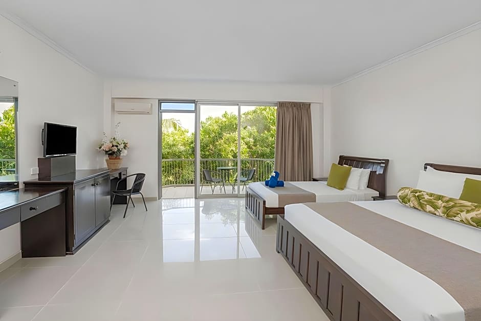 Outdoor pool area invites sun-soaked relaxation year-round, with an adults-only policy that keeps poolside moments serene. A sun deck and inviting terrace add to the scene, ideal for postcard-worthy afternoons after airport arrivals or island explorations. This waterside retreat balances laid-back charm with easy access to Nadi’s coastal sights, making downtime feel like a mini vacation within the vacation.