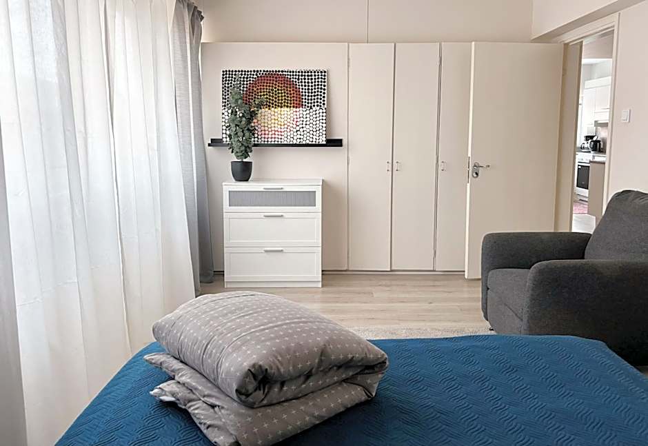 The apartment is in perfect location. It's roomy for a couple or a single. There is also a sauna if you like it. Cleaning was included to the price of this apartment.