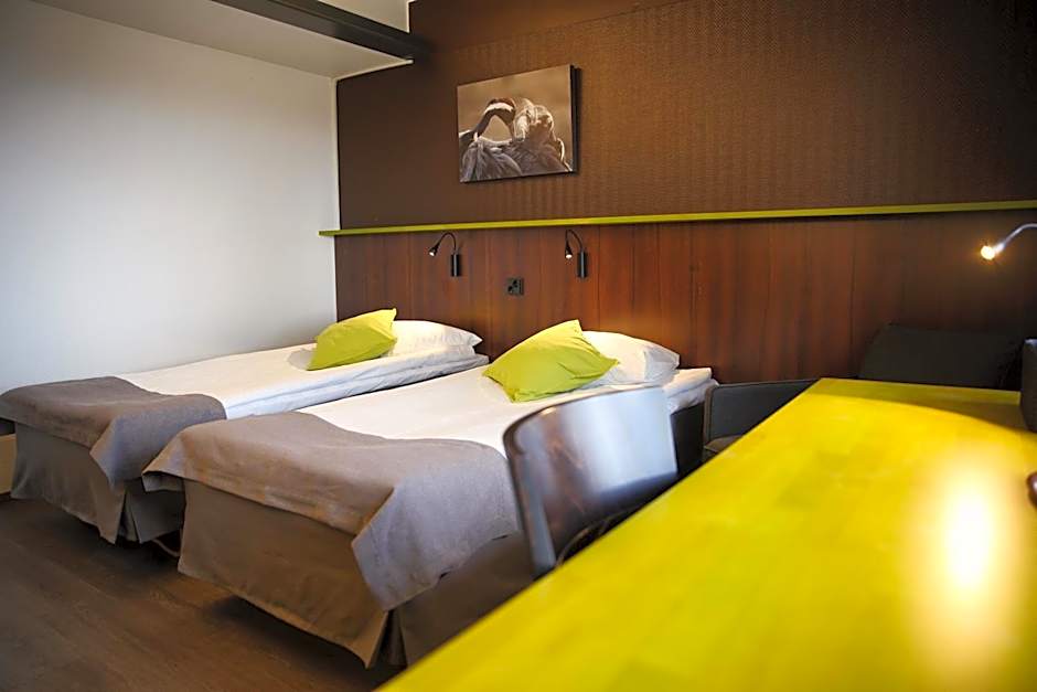 The Finlandia Hotel Airport Oulu offers a variety of room types, including Twin Rooms with Balcony, Economy Single Rooms, Standard Family Rooms, Standard Single Rooms, Economy Twin Rooms, and Standard Twin Rooms. Smoking is not allowed in any of the rooms. The rooms accommodate different numbers of adults and children, ranging from 1 adult and 1 child to 4 adults and 1 child. The bed sizes vary, with most rooms having 2 twin beds. Room sizes range from 118 to 226 square feet.