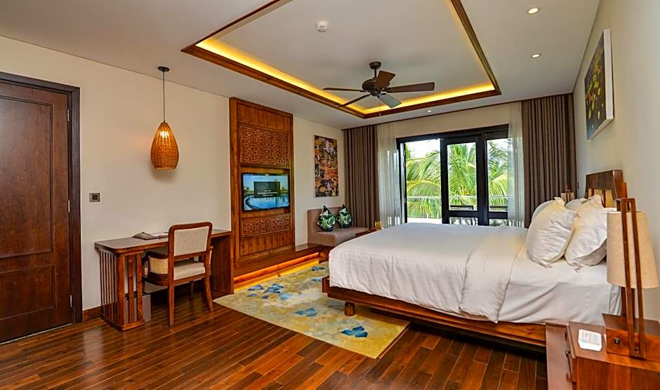 Key amenities include Free Wifi, a Restaurant and Bar, Beachfront access, and a Lake view. The property also features a Free Business center, a Fitness center (free), 24-hour front desk, Private entrance, Elevator, Non-smoking and Wheelchair accessible rooms, and Parking options (extra charges). Pet Friendly (extra charges), Terrace, Garden, Balcony, and soundproof rooms add practical touches for a comfortable stay.