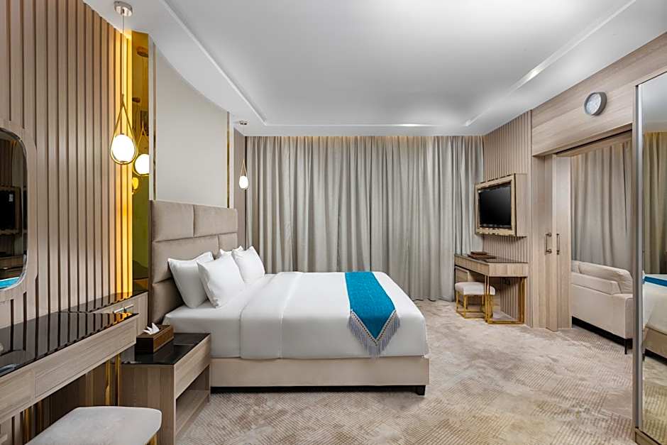 Les choix de chambres vont de la Chambre King et de la Chambre Twin à une variété de suites et d’options économiques, notamment : Suite avec balcon ; Suite avec terrasse ; Suite exécutive ; Suite familiale (2 chambres, cuisine) ; Économique, 2 lits jumeaux ; Chambre double économique ; Économique, 1 lit ; et Chambre - 2 lits Queen, salle de bain privée. Le paiement se fait uniquement en espèces.