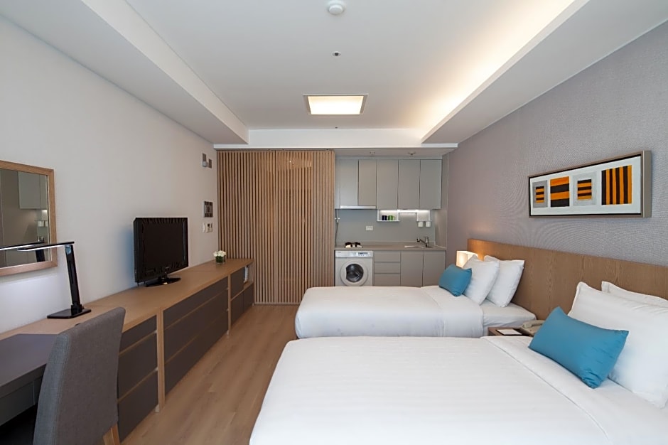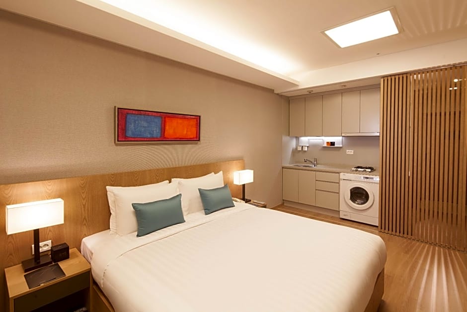 This hotel is centrally located and easily accessible from three stations. You can also take the Airport Bus to and from Incheon Airport for 17000 won. The hotel apartment is like an Airbnb, equipped with laundry, stove top, dishes, rice cooker, pans, fridge and microwave. What really stood out for me is the staff, specifically the lady who cleaned my apartment. She was so nice to my daughter and always made sure we were stocked up on everything even on the days that we weren't having our room cleaned.