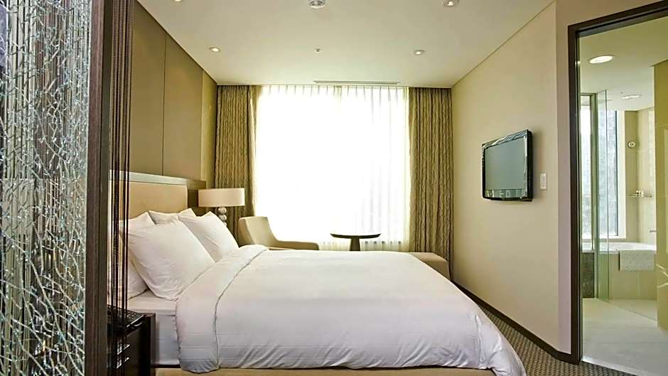 The bed is not comfortable! Also, although there is a pool onsite, hotel guests are made to pay for entrance (20,000 won for adults & 10,000 won for children) which seems quite unreasonable.