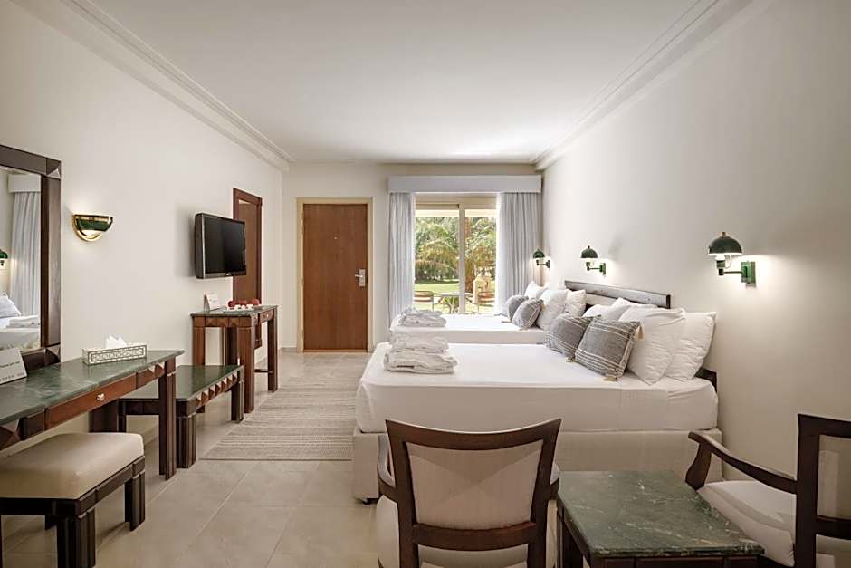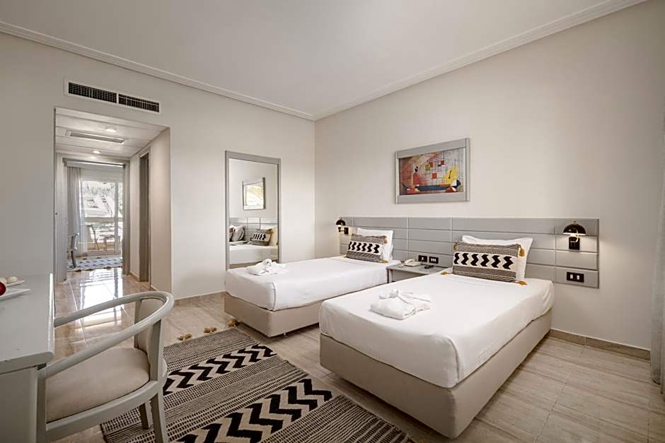 has access to the sea, close to city center, very crowded with families from all nationalities, very cooperative stuff, very nice reception … thanks to everyone their … very safe … very nice food … closing time of the beach and pools at 17:00 is too early during summer time. Best fresh Egyptian circle bread with tons of varieties. you can stay without any extra single penny due to amount of food and drinks offered. daily shows for families and kids.