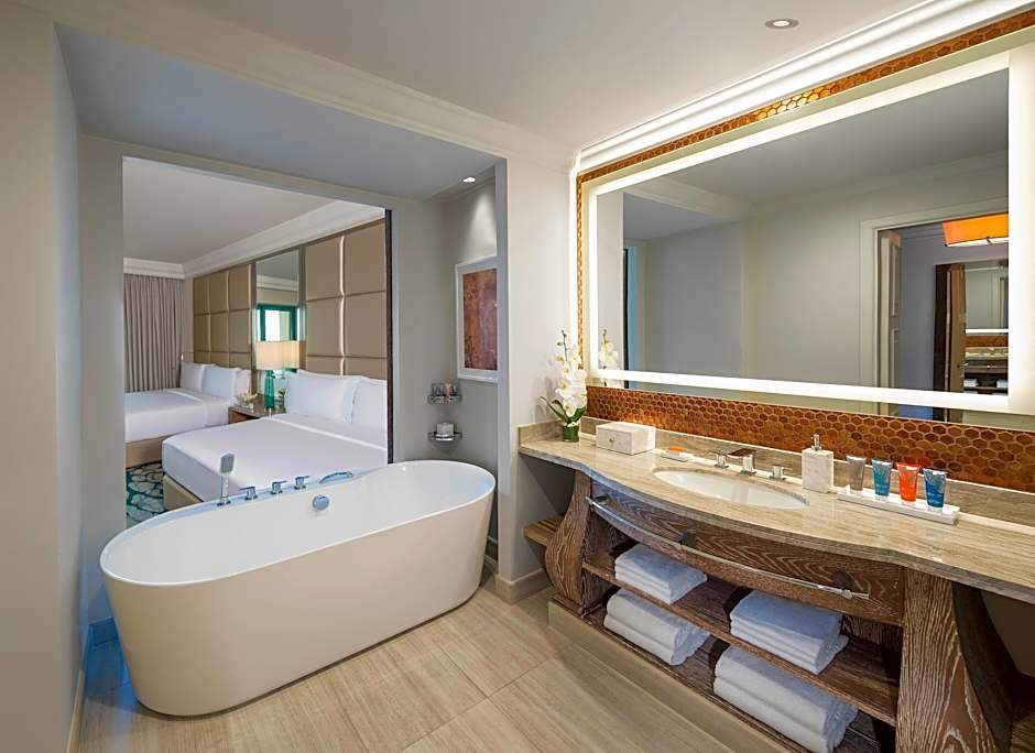 Plongez dans un plaisir sans fin au parc aquatique gratuit du complexe, avec des toboggans palpitants et une rivière paresseuse parfaite pour une journée de jeux aquatiques. Pour ceux qui souhaitent se détendre, offrez-vous des forfaits spa revitalisants ou profitez du centre de remise en forme ultramoderne et de la piscine extérieure. Les familles apprécieront le Kids' Club et le délicieux buffet adapté aux enfants, garantissant que les invités de tous âges passent des vacances fantastiques. De plus, avec 18 651 avis élogieux de voyageurs satisfaits, il n'est pas surprenant qu'Atlantis soit devenu une destination prisée pour les familles, les couples et les amateurs d'aventure !