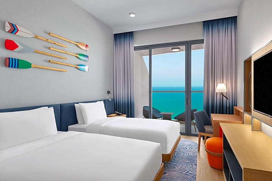 Hampton by Hilton Marjan Island offre une expérience luxueuse et immersive, proposant un mélange de détente et d'aventure pour les voyageurs en quête d'un séjour en bord de mer inoubliable à Ras Al Khaimah.