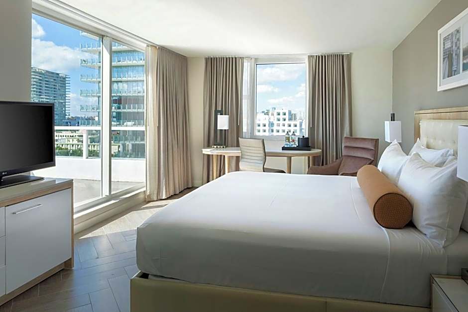 Les atouts sur place vont au-delà du littoral : un espace piscine extérieur lumineux avec une piscine réservée aux adultes, chauffée, à débordement et dotée d'un bassin peu profond offrant une vue. Les options de restauration couvrent une palette de goûts, de Lolo's Surf Cantina, qui sert des plats mexicains, à Azubu Miami Beach et The Den, qui proposent une cuisine japonaise, sans oublier Starbucks pour une dose de caféine.