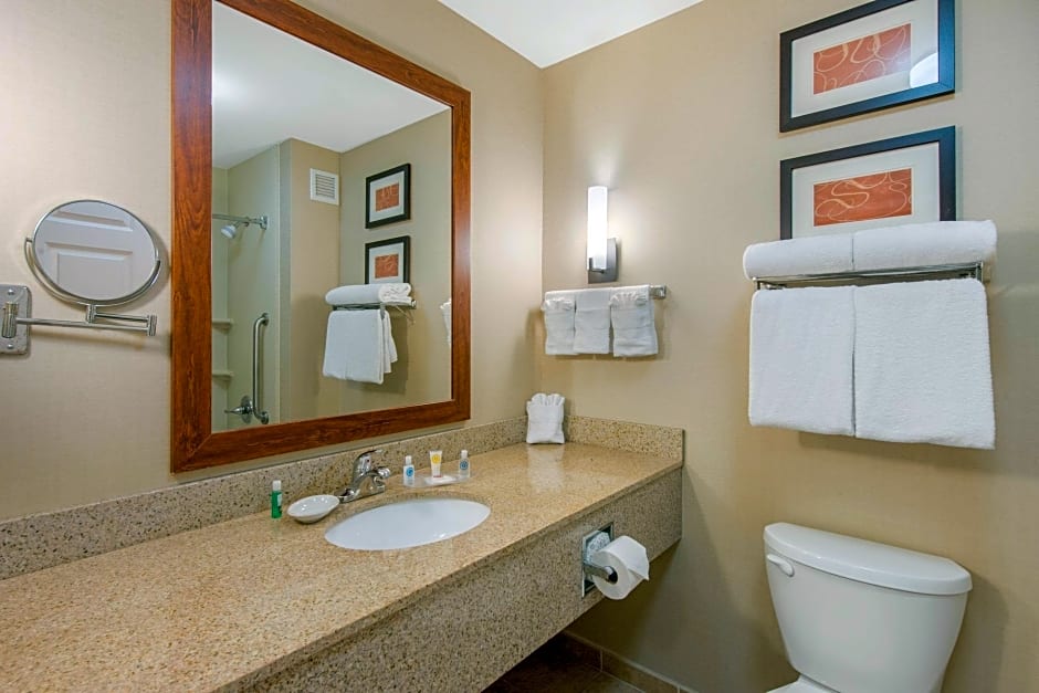It was clean. All the staff were helpful and friendly. The room had all the amenities and the beds were comfortable. The pool and hot tub were nice. Situated in an area that was easy to get in and out and close to many sites we wanted to see without being crowded in. I loved having the sofa in the suite.