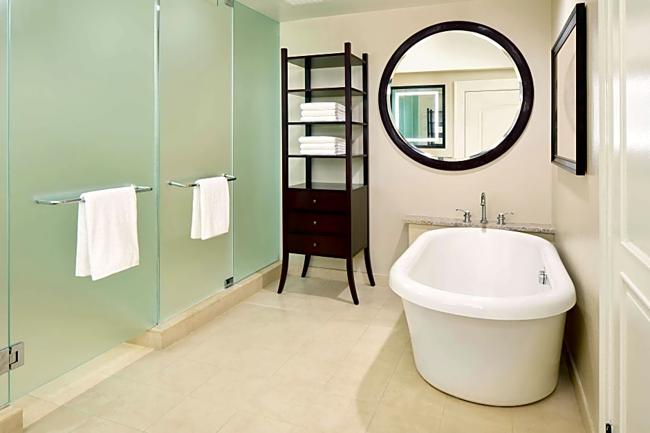 Beautiful accommodations! We had a gorgeous suite with two bedrooms , 2.5 bathrooms, living room, full kitchen and private patio. Everything was super clean! Enjoyed the luxurious soaking tub and high end bed linens , fluffy towels & robes . The hotel staff were professional, very friendly, and assisted us with dinner reservations . They even provided us with complimentary bottle of wine for our wedding anniversary .