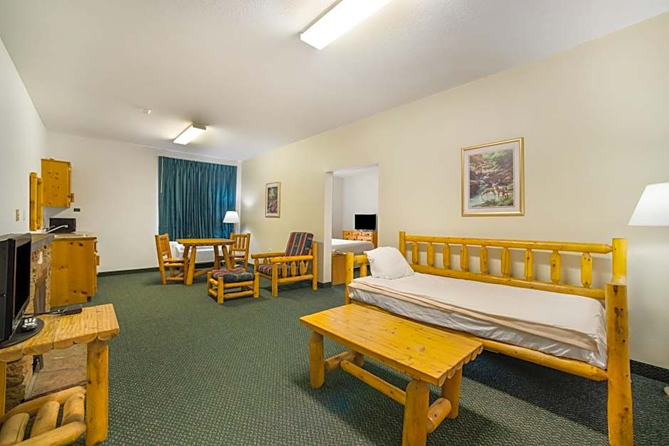 Cute hunting lodge motif. Room a little larger than normal with mini fridge/microwave. Cool wood furniture and table with chairs. Coffee and some fruit for me was great, there's more to the breakfast than that.