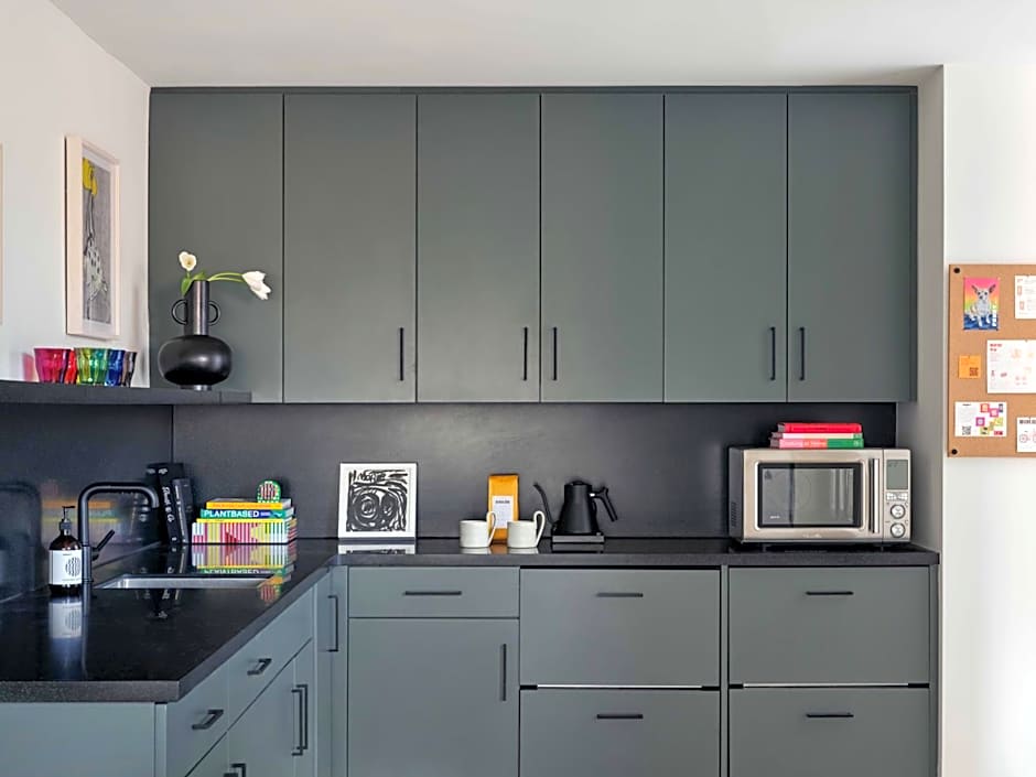 Although there was a kitchenette, the hotel did not provide any bowls, plates or washing up liquid/ sponges so it's not really suitable to use for cooking or eating I also don't understand modern hotels obsession with clear doors in the bathroom. As two friends we don't want to see each other using the bathroom or shower so just be mindful if you're the same. The WiFi also logged out quite often and the upstairs restaurant is only open for breakfast on the weekend.