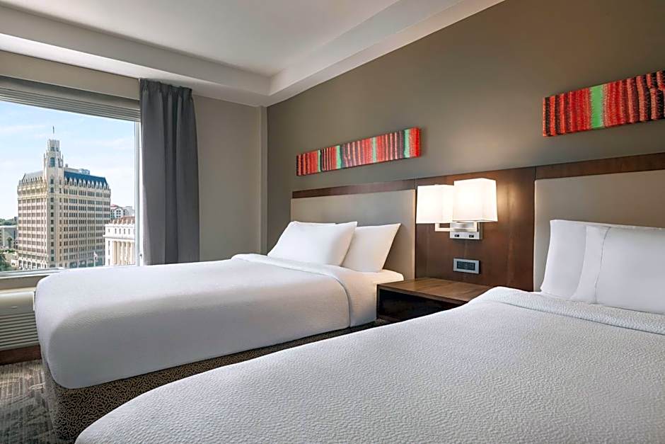 We came to San Antonio for the Alamo. It was a 3 minute walk from our hotel room to the Alamo. Our room was clean, comfortable, with 2 nice beds, and clean and spacious bathroom, and it was quiet. The breakfast and our dinner at the onsite cafe was everything we wanted. The hotel staff and cafe staff were quite helpful and friendly.