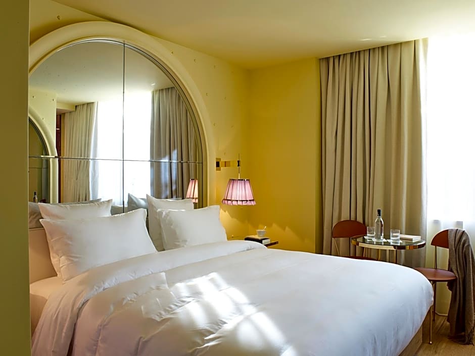 The location is unmatched. It is central without being right next door to anything too noisy or distracting. One block in any direction you can find excellent dining. Great shopping just a block or two away. Close to BHV, Eataly, excellent restaurants and cafes, late night spots, morning croissants etc. Lovely 20 minute walk to the Louvre, 8 minutes to the Picasso Museum, Place de Vosges or the Pompideu Center. OH! A great little ice cream shop is right across the street also! The hotel itself is a little gem, visually and experientially. The rooms are custom curated and you feel like you are in a designer's apartment. Custom lighting, mirrored surfaces, electronic drapes... all add that touch of class. They have a little bar open in the evenings if you want to sit with a cocktail or glass or wine, or bring one to your room. I have stayed there twice now (once with my husband, and once alone) and HIGHLY recommend it!