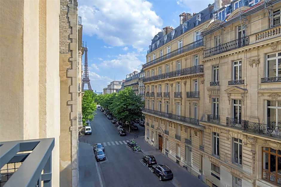 the hotel is modern and clean with spacious lobby and a beautiful rooftop over looking the tour Eiffel steps away from the brasseries and some good restaurants, the modern room is very spacious and comfortable
