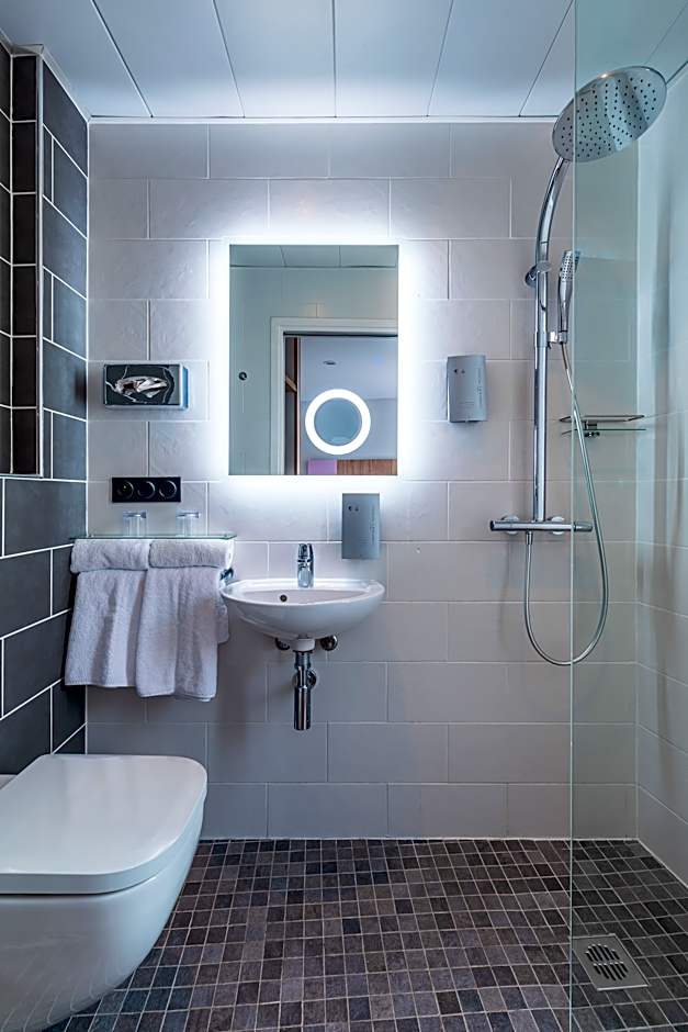 The bathroom design is imperfect to say the least which is a pity, as the room itself seem to be recently and tastefully decorated. But the floor in the ENTIRE bathroom does get wet, so be prepared to use all your towels to pet it dry. This might not be a problem on a very hot day, which was not the case when we were there, but in general - I don't know what the bathroom designer was thinking.