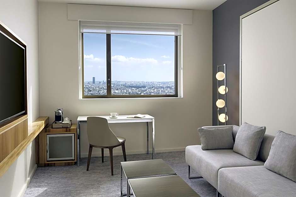 1. This is a super hotel. Ambience, facilities and location are top-notch. The hotel has a supermarket and cinema theatre in the basement. The supervisory/executive staff periodically checked with us about the quality of our stay. That said, room tariff is on the high side and room size is good as per Paris standards. 2. The lounge is excellent and provides a grand view of the Tower and in fact the whole of Paris (from the 34th floor, if I remember correctly). Food and drinks (a variety of French wines and beer) served in the lounge are very good. Lounge staff are courteous and efficient.