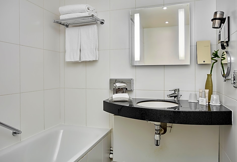 Great dinner menu and very good breakfast buffet, strong shower and comfy bed. Relative big TV. Friendly staff and many can speak English. Close to a Metro and train station. Bus in front of hotel. Safe and secure entrance and lift to room setup. Coffee and tea in room.