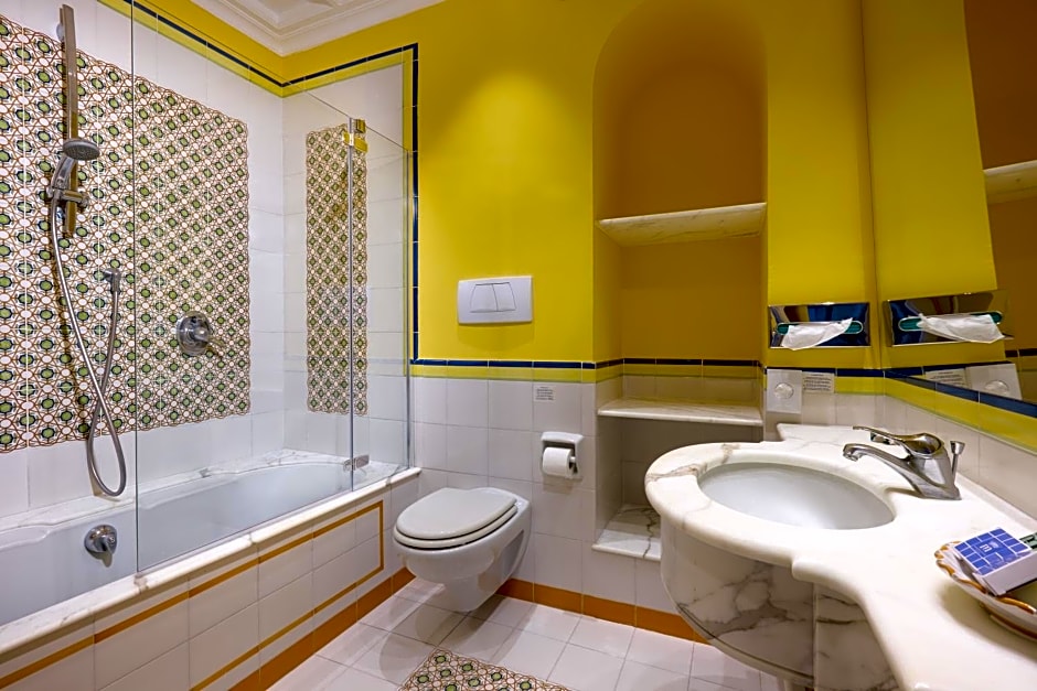 Comme si cela ne suffisait pas, l'hôtel propose une large gamme d'équipements conçus pour améliorer votre expérience ! Que vous souhaitiez vous détendre dans le jardin luxuriant, siroter des cocktails au bar ou rester actif au centre de remise en forme, vous trouverez un petit coin de paradis à chaque tournant. De plus, grâce à des services tels que la réception 24h/24, le Wi‑Fi gratuit et le bureau d'excursions, tous vos besoins sont satisfaits avec le sourire. Alors faites vos valises et mettez le cap sur le Grand Hotel Capodimonte — une maison loin de chez vous, magique, dans le paysage époustouflant de Sorrento !