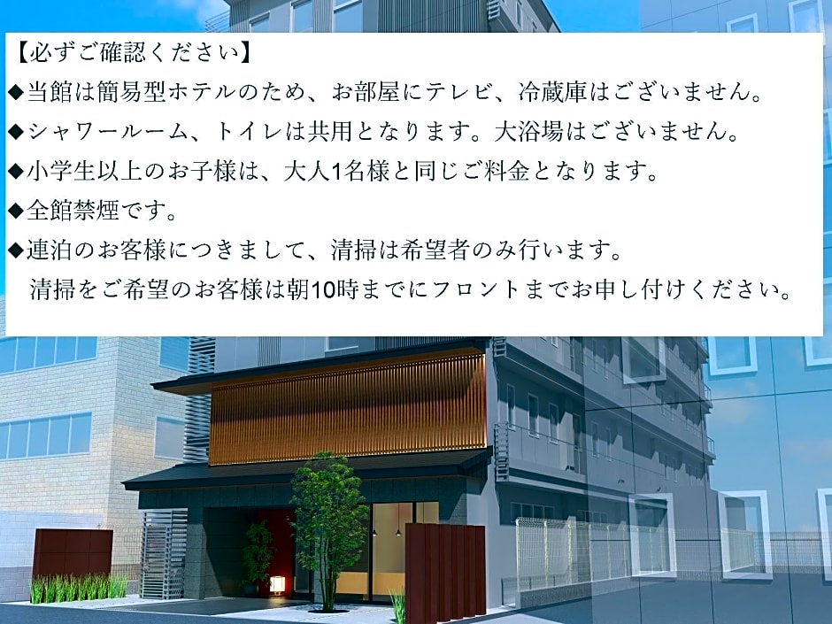 The hotel provided was absolutely perfect. The room had enough space for two people and was very clean. Pajamas (t-shirts and sweatpants) were provided for guests and were free to use. A coin-operated laundry room was available downstairs. The bathroom and toilet were also very spacious and clean. The bathing area on the 3rd floor was the safest to use as it was accessible only to women. Several food and drink vending machines were available in the lobby, and the check-in and check-out process was very smooth. The location was also close to Nishiki Market ob right side, and left side near to Starbucks and local cafe shop.