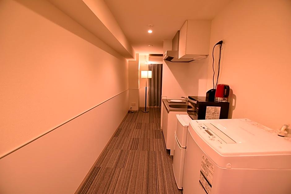 Adresse : Arakawa-Ku, Nishinippori 1-29-20. Les équipements proposés incluent Wi-Fi gratuit, climatisation, entrée privée, terrasse, chambres insonorisées, réception ouverte 24h/24, équipements de cuisine avec ustensiles et kitchenette, chambres non-fumeurs, accès par ascenseur, bidet, articles de toilette gratuits, balcon avec vue et étages supérieurs accessibles par ascenseur.