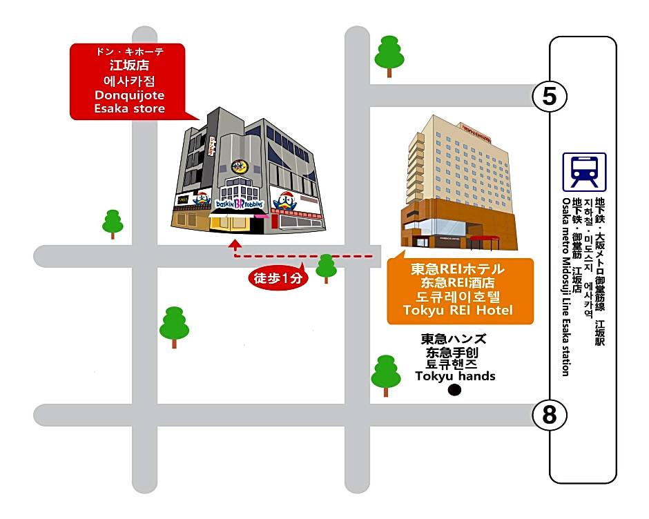Although this is a little bit out, being just next door to Esaka station with frequent trains, getting closer to the city is a breeze. The train line conveniently services stations like Shin Osaka, Umeda and Namba. Which makes transiting using the metro and Shinkansen easy. Enjoyed the breakfast buffet selection with a wide and plentiful variety. Breakfast staff and cleaning staff were always very welcoming. Everything in my room was clean and tidy. There was a microwave on reception level and multiple vending machines throughout. Many food and conbini options in the area.