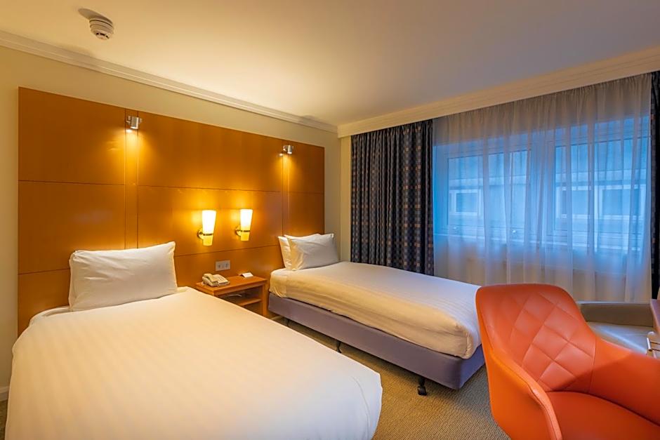 Room was great clean and tidy, robes, complimentary hot and cold drinks (usual tea coffee, water and Pepsi) and snacks (biscuits, crisps and Milky Way) were a lovely added touch to the room after a long day traveling and exploring on arrival, toped off with a hot bath to sooth our aching muscles, Dove body wash, shampoo and conditioner, Obviously hand wash and hand cream. The children’s key card is another lovely touch. Breakfast was delicious, we even had an evening meal of pizza and a burger. As I was traveling with my 8year old we could have shared the pizza and saved a few quid. Children do eat free but the children’s menu is limited and nothing she fancied. Location to Regents St makes it quick and easy to access all the tourist hotspots. We were tourists and used the big B open top bus to explore with the nearest stop on regents street 10min walk away. Sainsbury’s local just around the corner and a Nando’s. Usually taxis outside the hotel. Over all we had a great stay and felt safe as a single mother with my daughter we would definitely return. Thank you holiday inn.