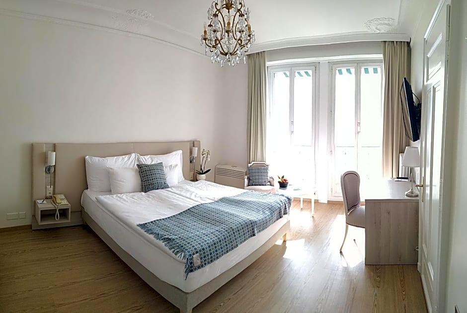 The property very well situated (in a more quiet corner of the boulevard) but very closer to everything. Staff was very friendly and helpful (Pawel who greeted us at the reception was exceptional, very friendly, provided advice and was super helpful). The hotel has a really cool vibe to it, made me think of the Titanic. It is a bit dated inside but the charm has been maintained - the views from the lake side rooms are truly incredible- I could have sat out in the balcony all day just looking out. The room was comfortable and had everything you’d need for a short stay, wifi was great. The pool was an added bonus for a hot day, but it isn’t heated so definitely not the kid of pool one can play in. The hotel has loungers by the pool overlooking lake Leman and the towering mountains (just stunning).