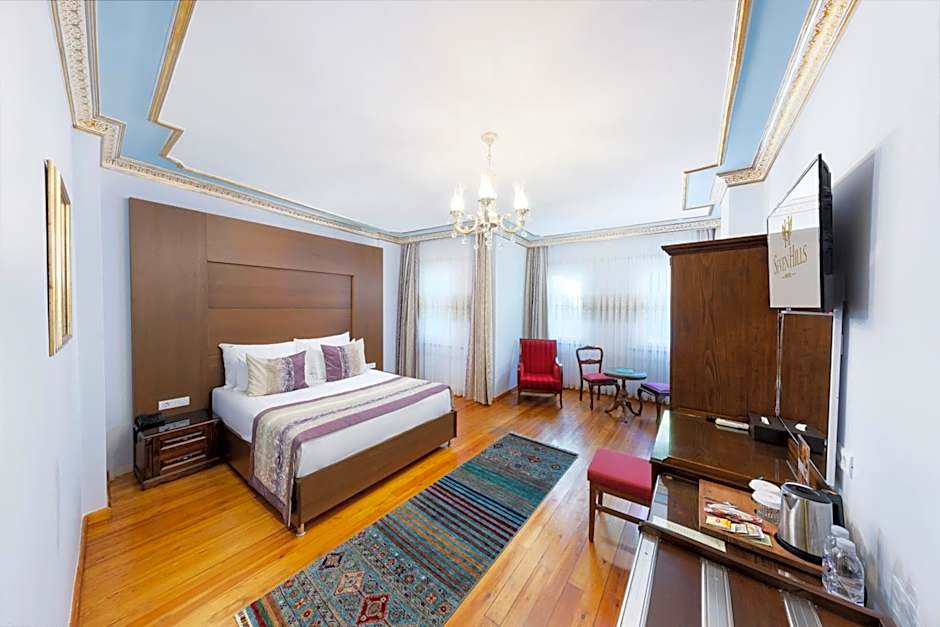 Les hébergements couvrent un large éventail, notamment la Suite Queen avec vue sur Sainte‑Sophie (646 pieds carrés), la Suite avec vue sur la Mosquée Bleue (323 pieds carrés) et la vaste Suite Royale de 969 pieds carrés. Il existe également des options avec vue sur la ville ou sur la mer, offrant un mélange d'espace et de style pour les voyageurs en solo, les couples ou les groupes plus nombreux à la recherche d'une base mémorable à proximité des monuments emblématiques de la ville.