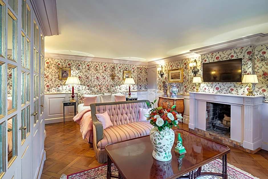 This two-story suite with a private pool, heated from April to the end of October, is located in an annex building in the garden. On the ground floor there is a living room and a terrace with a private heated swimming pool. The upper floor has a bedroom that can be configured to have a double twin beds and a bathroom with a bath and shower. An HD TV, a Nespresso coffee machine, a kettle and free WiFi access are all provided. Complimentary selection of spirits in the room.