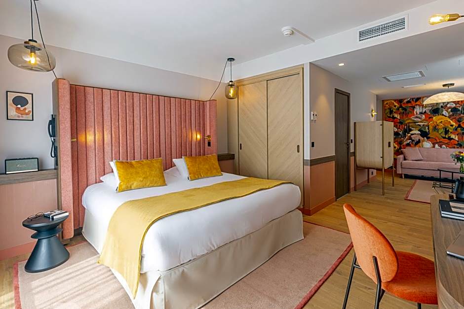 Yes, the hotel has a restaurant called l’Alchimiste. It offers a modern ambiance and serves French cuisine.