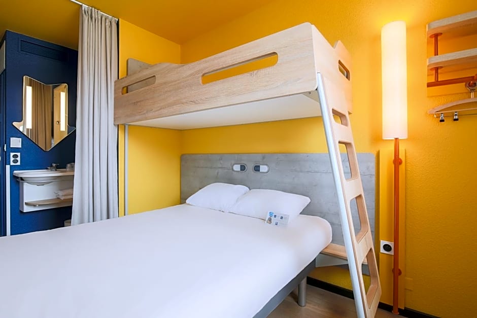 Breakfast included local and organic foods. The traditional croissant, chocolatine (pain au chocolat), coffee and the like but also 5 different kinds of jams/ confits, cereals, eggs, meats, fruit, yogurt and more. Very delicious, very worth the price and well laid out. The staff were friendly & the buffet was kept well stocked and clean. The room was small but the space was very well used so that we had a double bed with a bunk. There was a WC, a separate shower with a curtain for privacy and a separate sink/mirror which allowed the 3 of us to get ready in the morning with relative ease despite the tiny space. We felt welcomed. There was also a spacious lobby with a few items to entertain the kids. The hotel held our luggage for us until our room was ready so that we could go on the town once we got there around 10am. The A/C (Clima in France) was good.