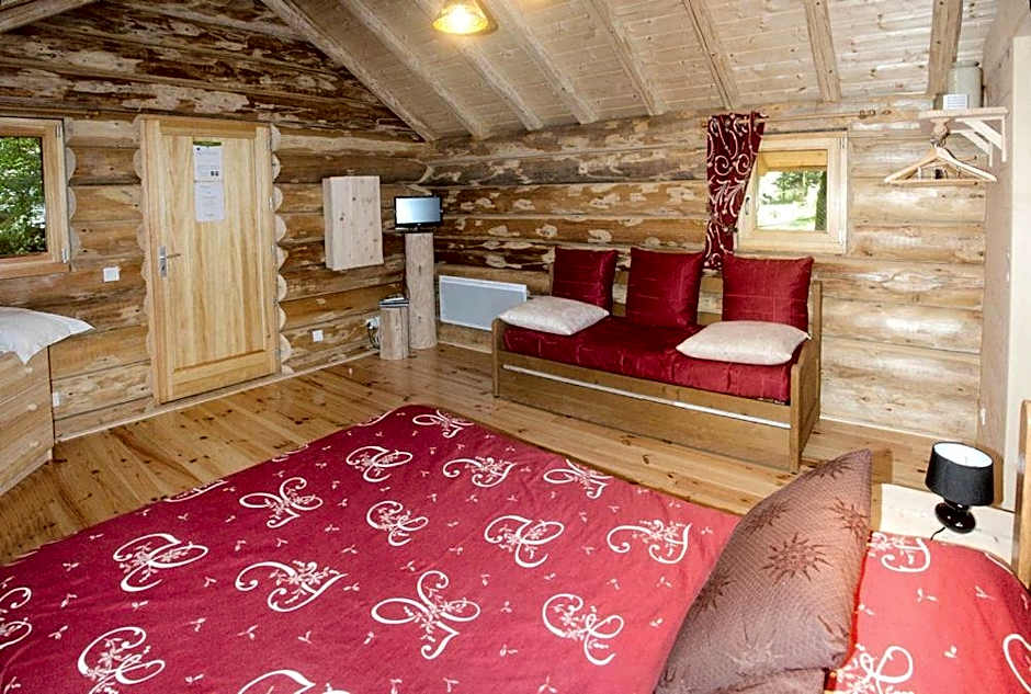 These wooden chalets include a private bathroom with a separate toilet. There is 1 bedroom, a terrace and a living room with an LCD TV.