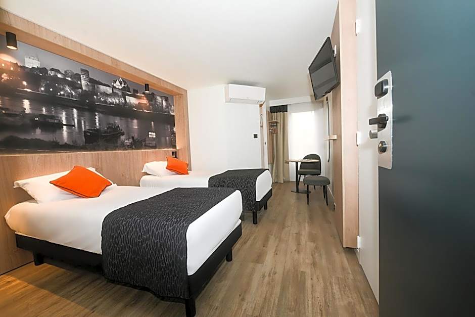 very nice Hotel. Just been refurbished. The staff was extremely friendly. The food was absolutely delicious. Also the city of Angers is a must, if you are in this part of France. Travelling with our dog, we found many places for him to swim. We have already decided to come again and we will certanly stay in this hotel.