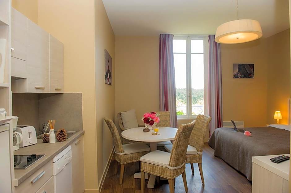 The building is beautiful. The rooms were very well furnished with super comfortable beds and comfortable seating. The kitchenette was comprehensively equipped and even had a dishwasher. Very clean and well prepared rooms. We had read some negative reviews in terms of atmosphere, lack of toiletry products, reception/ pool opening times, and lack of air conditioning. We had no problems at all and we were staying in the very hot weather, first two weeks of August. The reception staff Melissa and Sonia are so welcoming and the maintenance staff very pleasant indeed. Reception was open all morning and from 15 -18hrs . Excellent tourist information area available 24 hours. Free bicycles on site. There was an excellent high output fan, which we only needed to use on two nights, and it was more than sufficient. As this is a magnificent old Victorian building, there are shutters to protect against any rise in heat. A complementary kit contained a toilet roll, eco dishwasher tabs, washing liquid, cleaning liquid, and a sponge. The Monoprix supermarket was an 8 minute walk. We did not use the breakfast area as we enjoyed walking through the little park and taking the lift down to the boulangerie. Everything including the local area, the Residence, the customer service and restful environment was very, very good.
