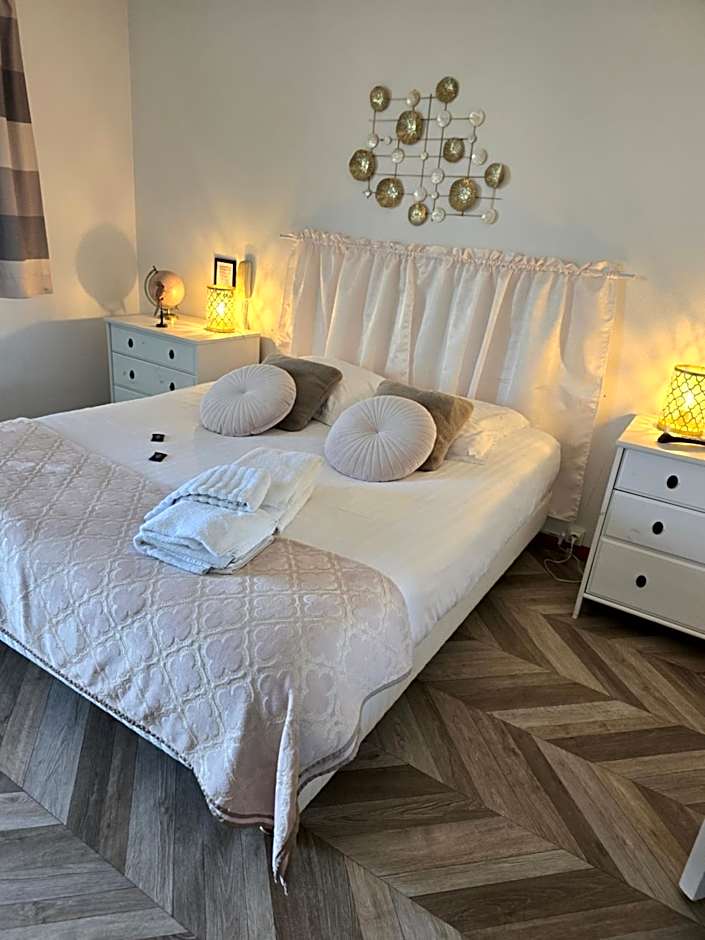Really liked staying here, even though we checked in late due to the traffic at Caen. Damien the host met us and was very welcoming. The bed was huge and very comfortable, the bathroom and room in general a very good size. I cannot say I disliked this property but just my observation, I would have liked a light in the little area where the shelves for clothes are, this would have made it lighter, especially when using the safe. Also would have liked a few more English speaking channels even if it was just the news. Maybe investing in sky or something similar.
