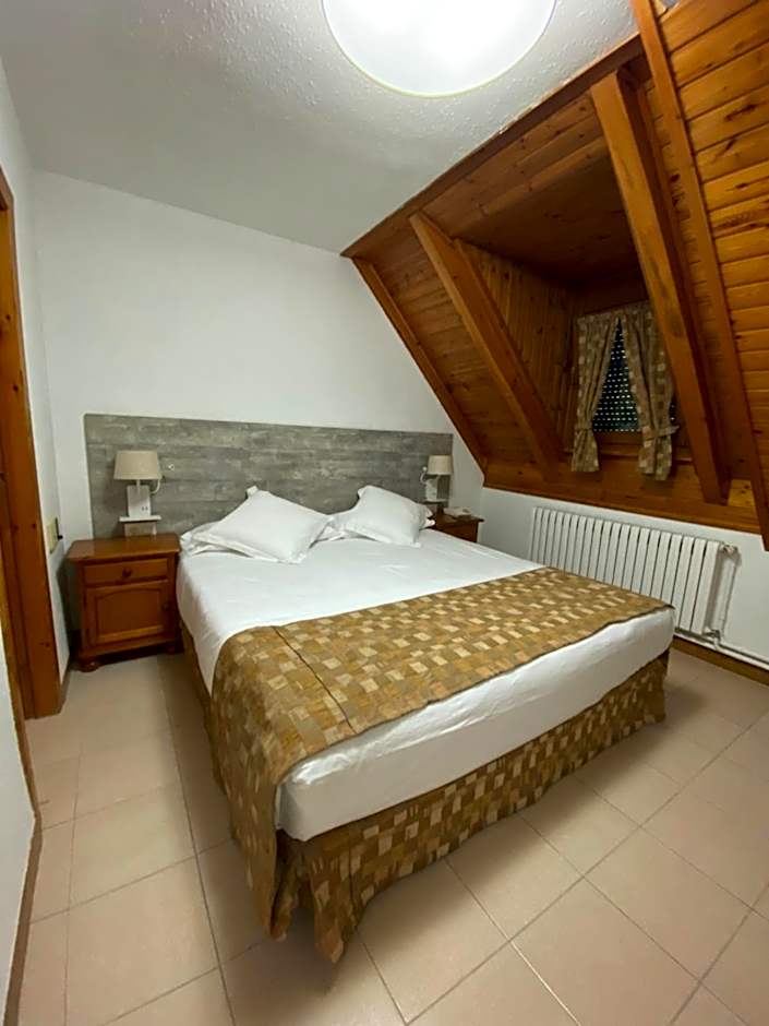 A lovely location near a small, picturesque town within a 5 minute walk and beautiful hilly walks with mountain views. The staff are very nice, friendly and speak English very well. The room is clean and comfortable, with a bath-tub equipped bathroom and a balcony with a mountain view. The building exudes a rustic charm of a mountain skiing lodge.Breakfast is great, with a big choice of cold meats, cheeses, Spanish tortillas, eggs, omelettes, baked goods, fruit, cereals, milk and coffee, all served in a charming dining room. The place is dog-friendly.