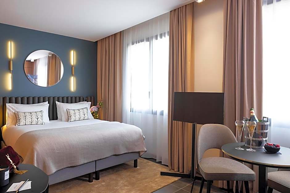 After a day of exploring the city, unwind in the hotel's bar where you can enjoy a selection of refreshing beverages in a sophisticated setting. Take in the picturesque views from the balcony as you sip on your favorite drink and relish the charming ambiance of Asnières-sur-Seine. The hotel's convenient elevator ensures easy access to all floors, making your stay hassle-free and comfortable.