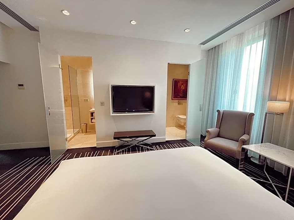 This large contemporary-styled and air-conditioned suite has a balcony and a flat-screen TV. The private bathroom has a bath tub and shower, hairdryer and toilet. A bathrobe and slippers can be found in the room.