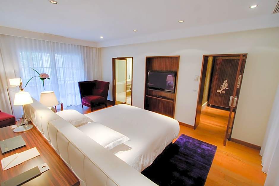 This spacious contemporary-styled and air-conditioned suite has a balcony and a flat-screen TV. The private bathroom has a bath tub and shower, hairdryer and toilet. A bathrobe and slippers can be found in the room. For a triple occupancy a supplement may be applied by the Hotel for the extra bed, can you add that it is the same for the breakfast the supplement is 40€ for the third adult person.