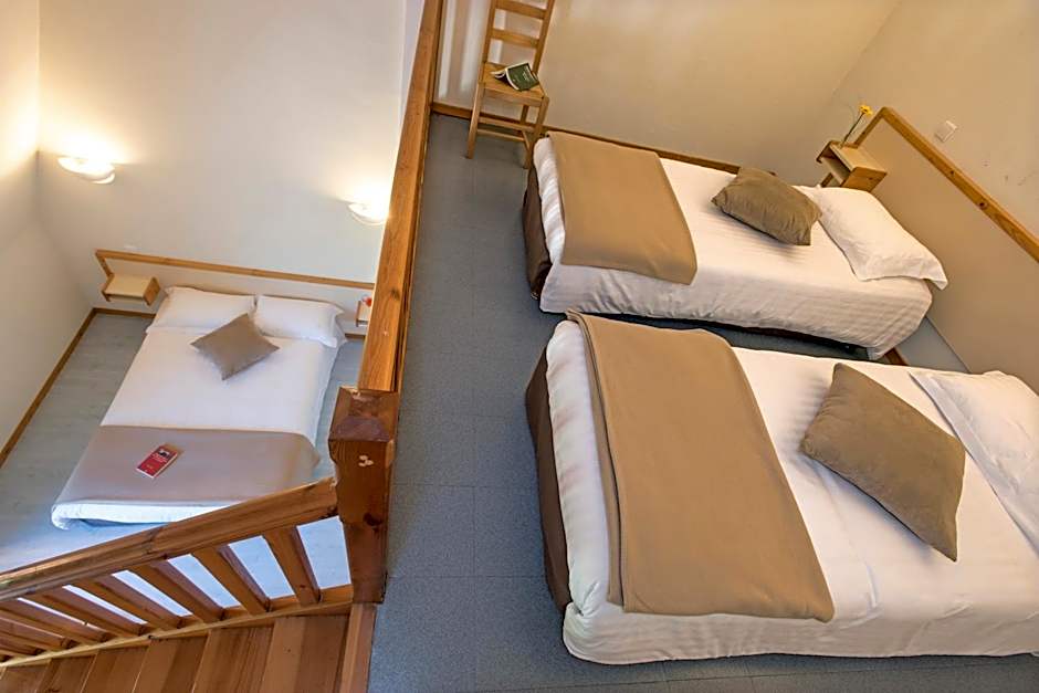 Room options include a range of configurations: the 431 sq ft Duplex apartment accommodates 4 adults and 2 children with 1 double bed and 2 twins; the 452 sq ft Duplex Suite fits up to 8 adults and 5 children with 3 twins and 1 double; the 484 sq ft Duplex Family sleeps 8 adults and 4 children with 2 twins and 2 doubles; the Standard Room at 215 sq ft accommodates 4 adults and 3 children with 1 double bed.