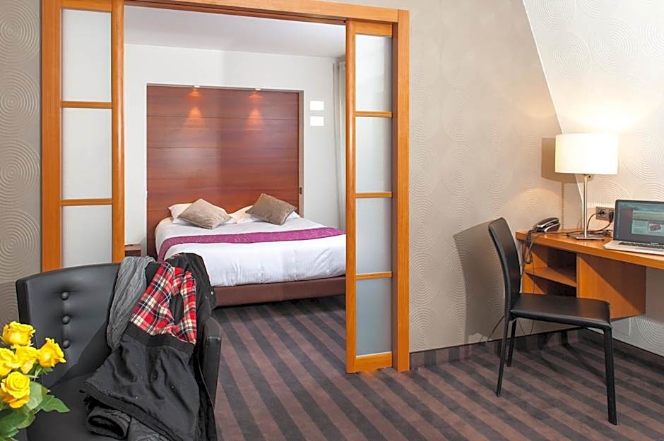 Select from a range of room types to suit your needs at Brit Hotel Belfort Centre-Le Boreal. Whether you're traveling with family, in need of more space in a suite, or seeking a comfortable standard room for your stay, the hotel offers accommodations that can house 2 adults and 1 child. With an array of room choices, you can find the perfect space to unwind and recharge for another day of exciting adventures in Belfort.