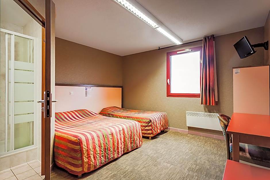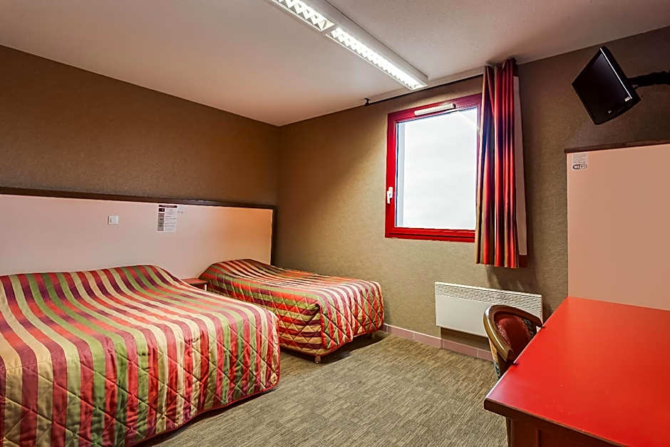 We have stayed here before, and were again very satisfied. Good hotel for a night on the road. For the type of hotel (on industrial area) and the price this is much much better than the usual hotel chains you find in such areas in France. Nice color full room, with all we need. No noise of cleaning staff in the morning, free parking, supermarket nearby, noon (late) checkout, clean, good bed, elevator, good badroom. We arrived after closing time reception (23:00) but they arrange to provide the key.