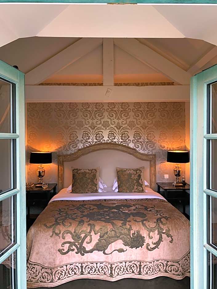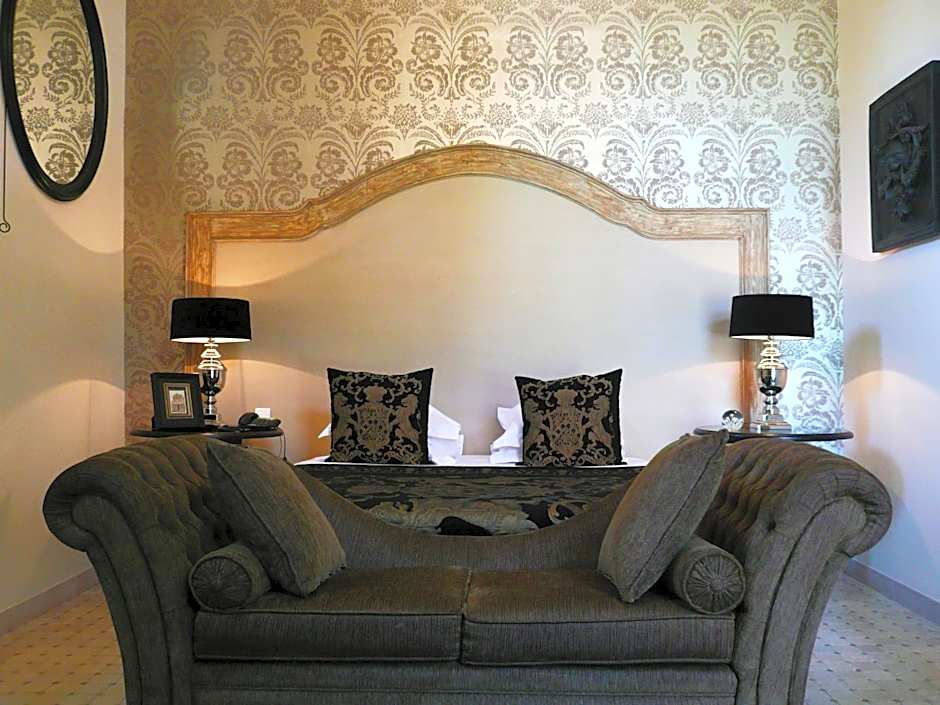 Accessible by the Manor's main stairs, this suite features a lounge with a sofa bed (140x200 cm) opening onto a double room with king size bed (180x200 cm). It also features a safe, a mini-bar, a telephone, a flat-screen TV, a DVD and a CD player. The marble bathroom is fitted with a magnifying mirror, a bathrobe, slippers and Acqua di Parma toiletries.